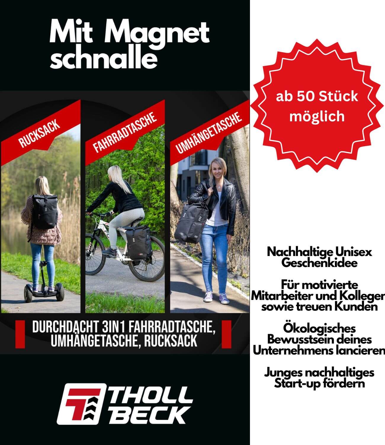 Egal ob zu Weihnachten, Geburtstagen oder bestimmten Ereignissen: Mit unserem nachhaltigen THOLLBECK Fahrradtasche mit Rucksackfunktion oder die Allrounder Transportasche begeisterst du deine Belegschaft mit einem begehrten unisex Geschenk, welches DU ganz individuell mit Deinem Logo veredeln kannst.